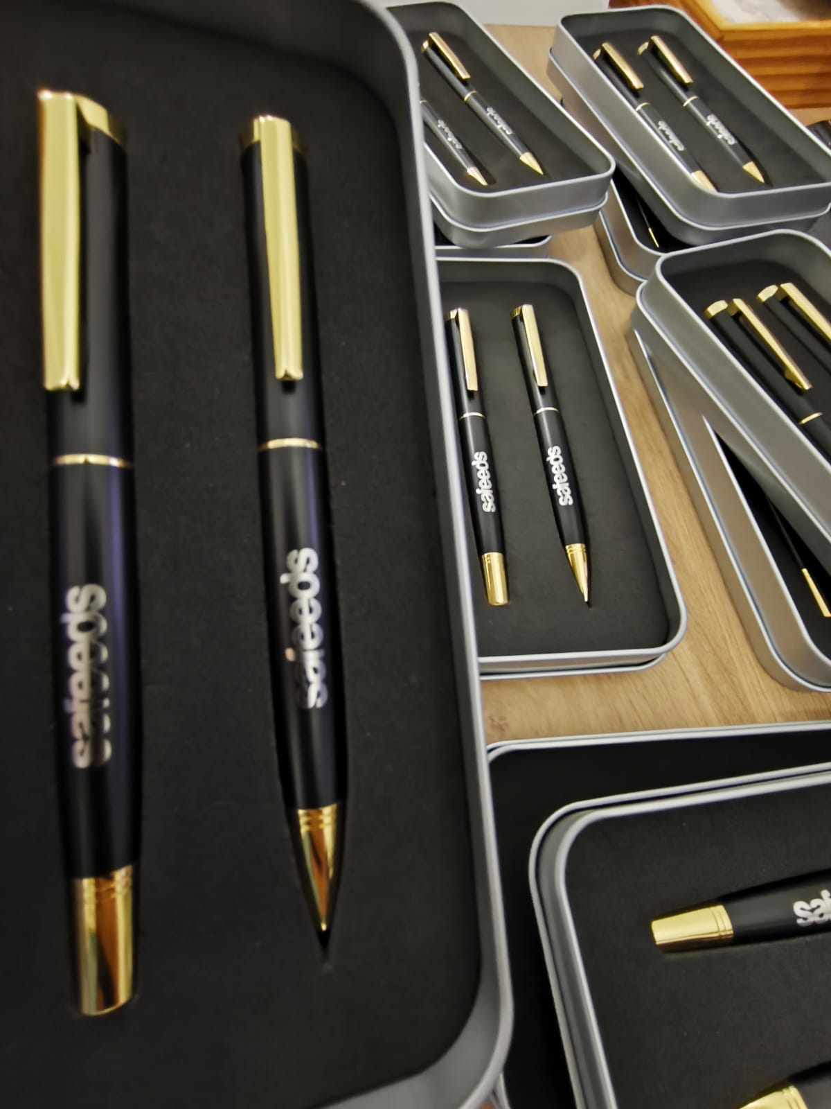 KIT CANETA PRETA E DOURADA